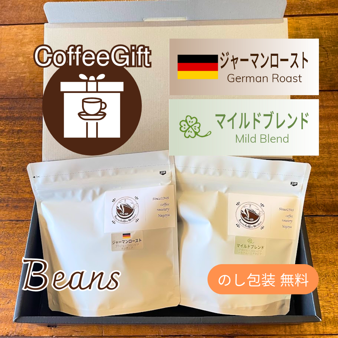 【コーヒーギフト】コーヒー豆150g×2種(1)|ジャーマンローストとマイルドブレンド【当店の人気TOP2詰め合わせ】